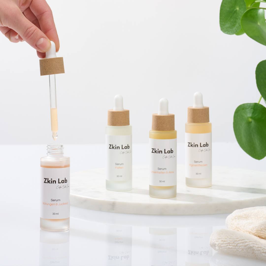 Our Zkin Lab serums specifically attack the causes of skin problems and build on the intact skin barrier. We offer serums for acne & blemishes , pigment spots , wrinkles and redness & itching .